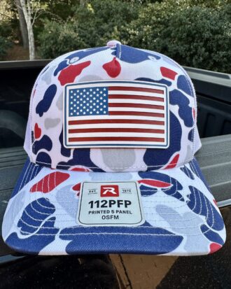 USA Flag Red/White/Blue Patch Trucker Hat Americana Duck Camo