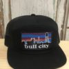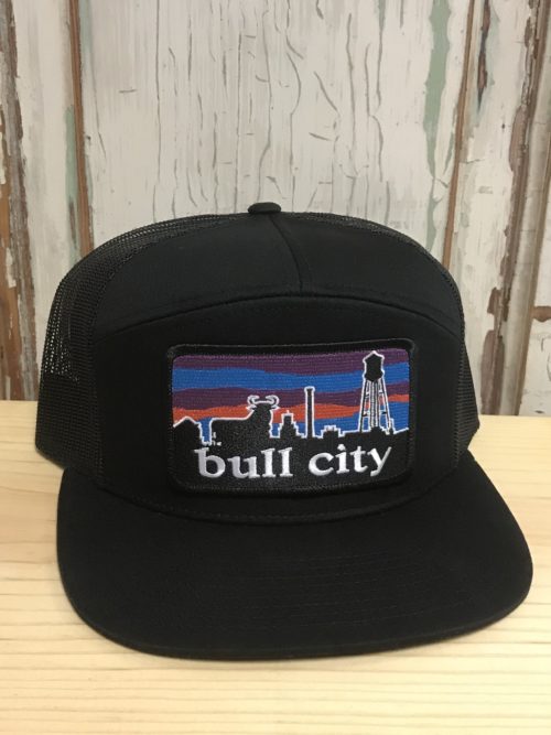 7 Panel Bull City Skyline Durham NC Patch Trucker Hat Black/Black