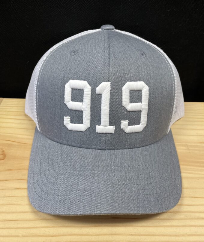 919 Embroidered Snapback Trucker Hat Heather Grey/White
