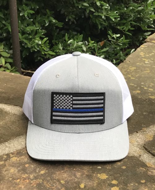 AG Outfitters Thin Blue Line Flag Patch Trucker Hat Heather Grey/White