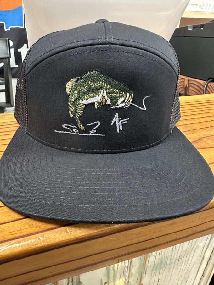 American Fetcher Largemouth Bass Trucker Hat Black/Black 7 Panel