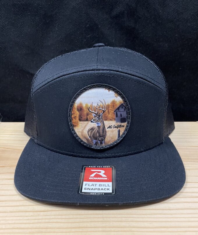 Barn Buck Patch 7 Panel Trucker Hat Snap Back Black/Black Richardson 168