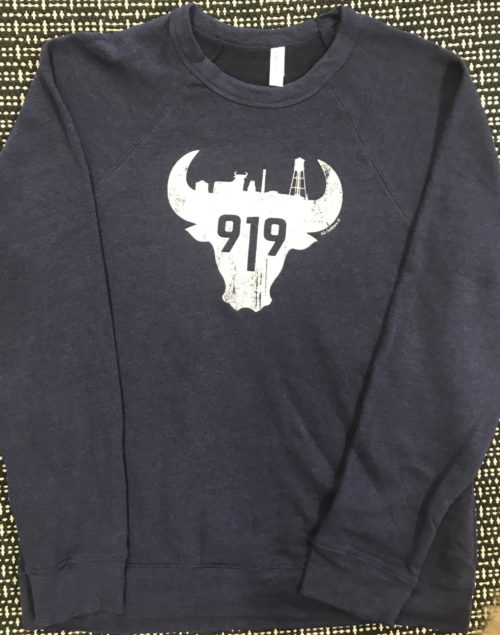 Bull City 919 Durham NC Fleece Sweatshirt Heather Blue/White Unisex