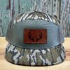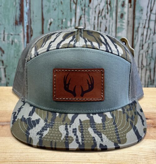 Deer Antlers Leather Patch 7 Panel Trucker Hat Bottomland/Loden