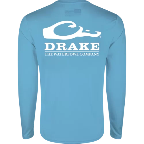 DRAKE Icon LS Crew Logo Shirt Provence Blue DS9551 New UPF 50+