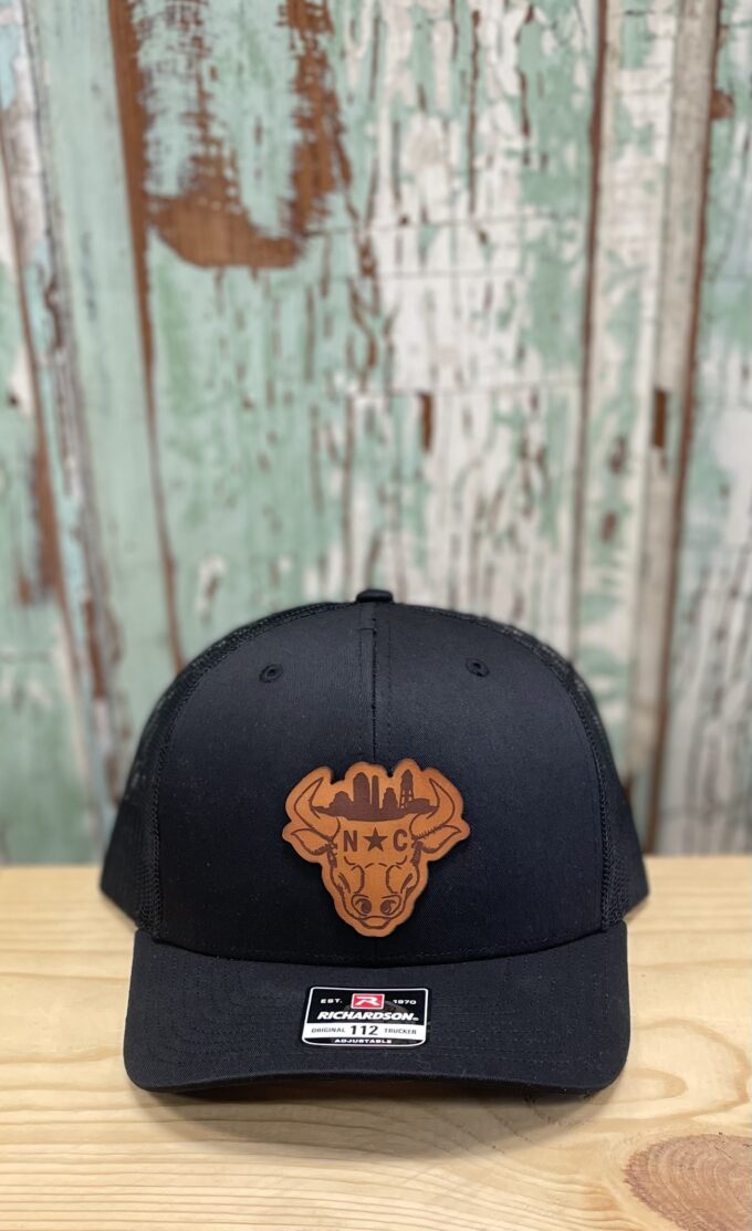 Durham Bull City Leather Patch Snapback Trucker Hat Black/Black