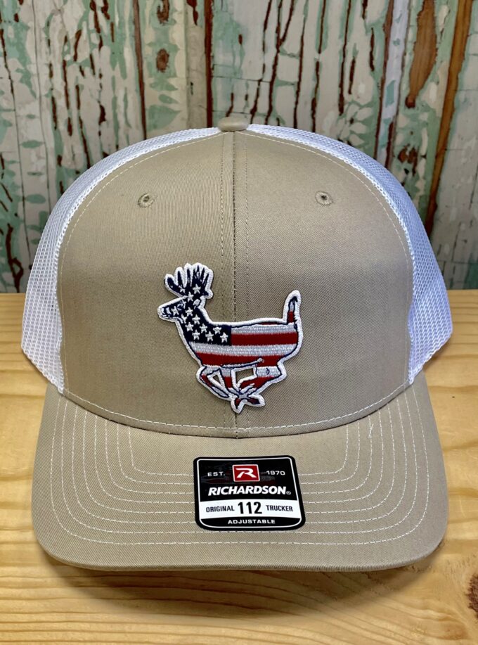 Old Glory Buck RWB USA Deer Trucker Hat Khaki/White