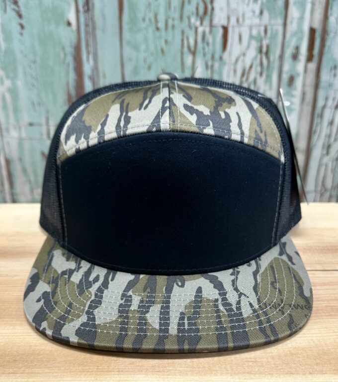 Blank Hats, HeadwearCustom Color Richardson 168 7 Panel Trucker Hat Black/Bottomland Camo/Black Blank