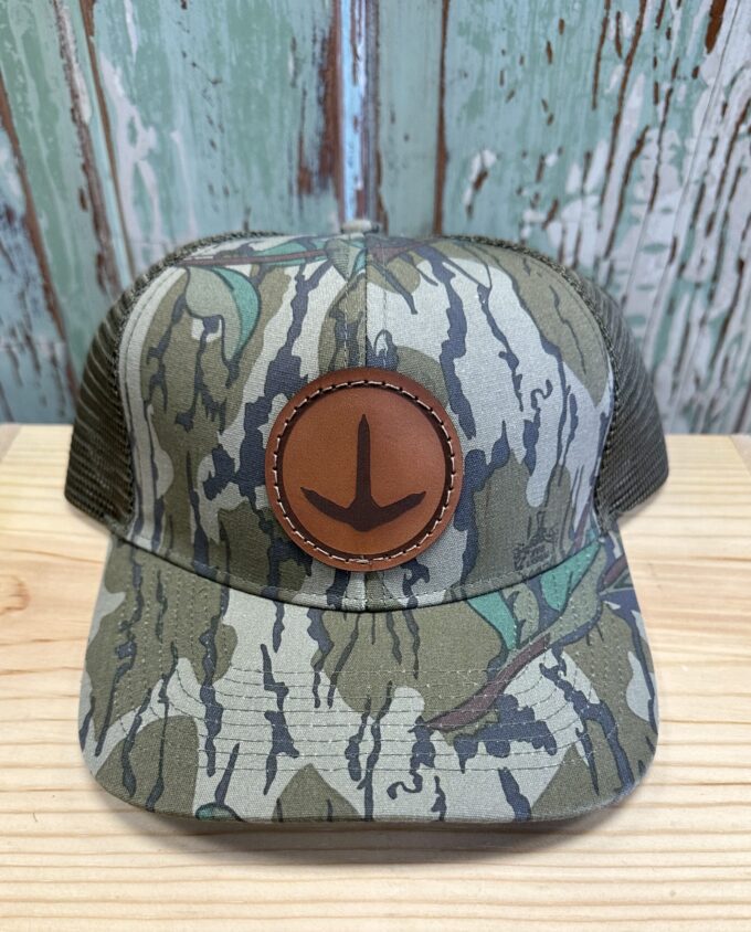 Turkey Track Leather Patch Trucker Hat Mossy Oak Greenleaf/Loden