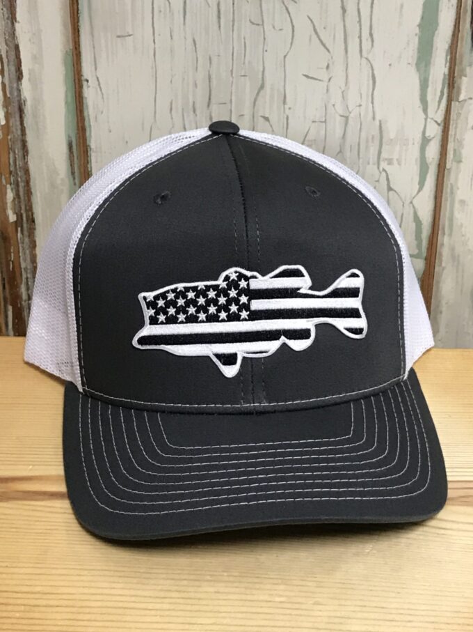 USA Bass Patch Snapback Trucker Hat Charcoal/White